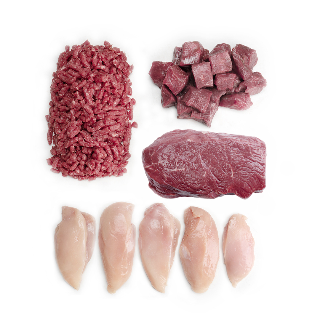 All meat is certified halal. 500g Beef Mince Australia (Hormone/Antibiotic Free) , 400g Beef Topside Roast South Africa (Hormone/Antibiotic Free) , 500g Chicken Breast (Hormone/Antibiotic Free) , 500g Beef Cubes Australia (Hormone/Antibiotic Free) ,